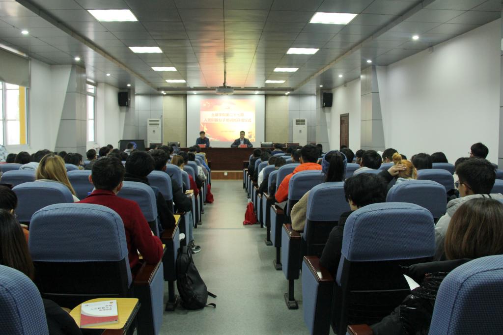 12月9日下午,pg娱乐电子游戏官网入口第二十七期入党积极分子培训班在J15-219报告厅正式开班,学院党委副书记(主持工作)宋西路、党委干事王贝贝及118名入党积极分子参加了开班仪式。
