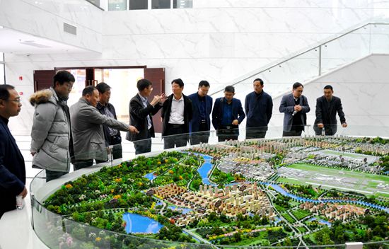 院党委理论学习中心组成员参观青岛市新机场区域规划沙盘