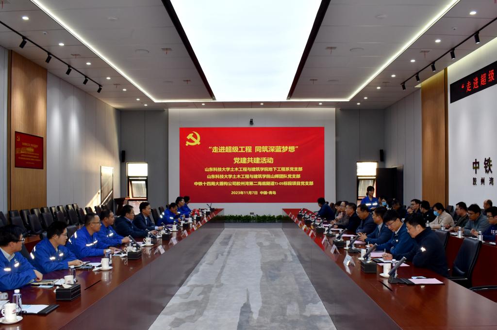 11月7日,pg娱乐电子游戏官网入口党委理论学习中心组联合地下工程系党支部与山晖团队党支部一行27人赴胶州湾第二隧道工程现场参观学习。中铁十四局集团有限公司工程管理部部长孙亮、大盾构工程有限公司副总经理路开道、盾构管理中心主任吴玉礼、胶州湾第二海底隧道项目部党支部书记季璐等企业负责人陪同参观并出席座谈交流会。