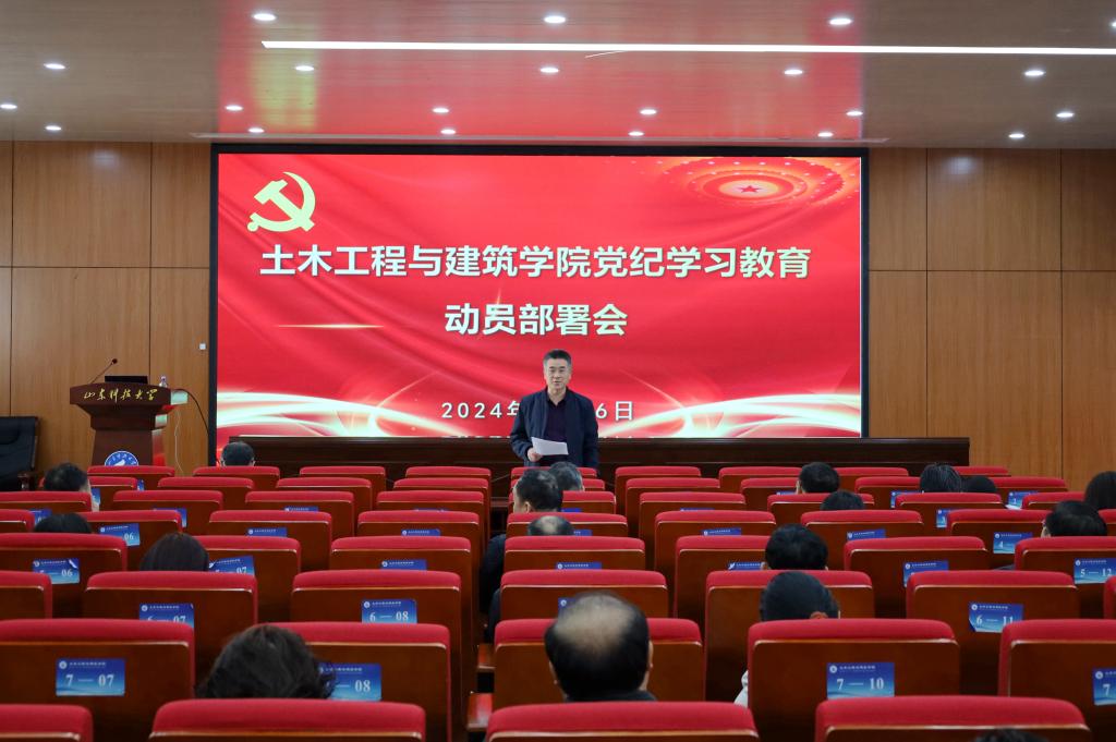 4月16日,为深入学习贯彻习近平总书记关于党纪学习教育的重要讲话和重要指示精神,落实学校关于党纪学习教育的工作部署,pg娱乐电子游戏官网入口党委召开党纪学习教育动员部署会。pg娱乐电子游戏官网入口党委书记宋西路主持会议并作动员讲话,学院全体党员参加会议。