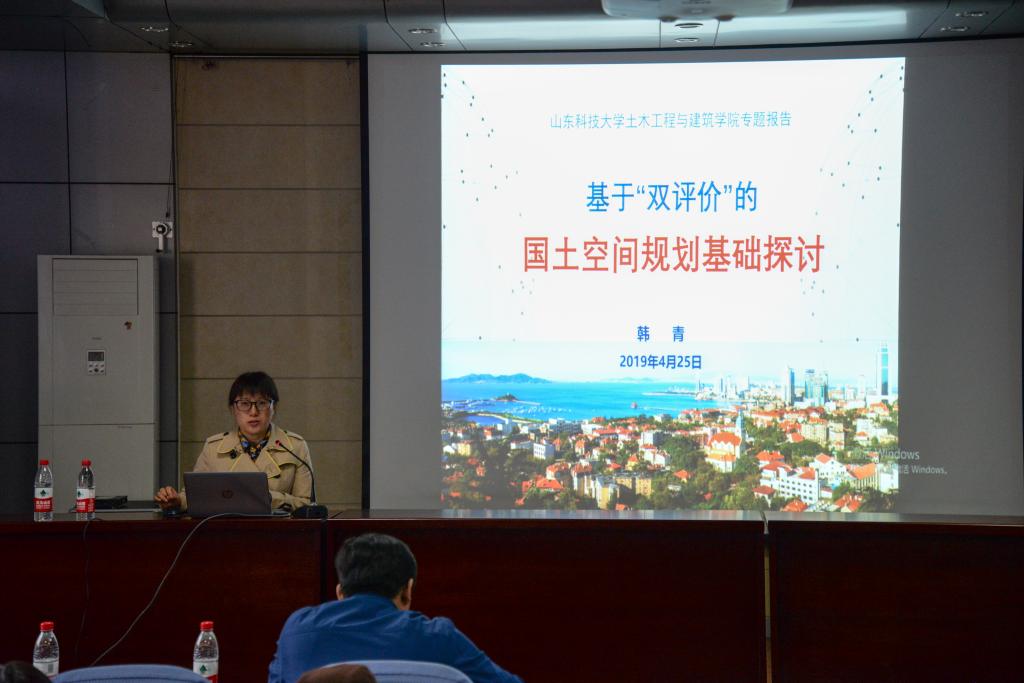 青岛市自然资源和规划局韩青研究员为pg娱乐电子游戏官网入口师生作报告