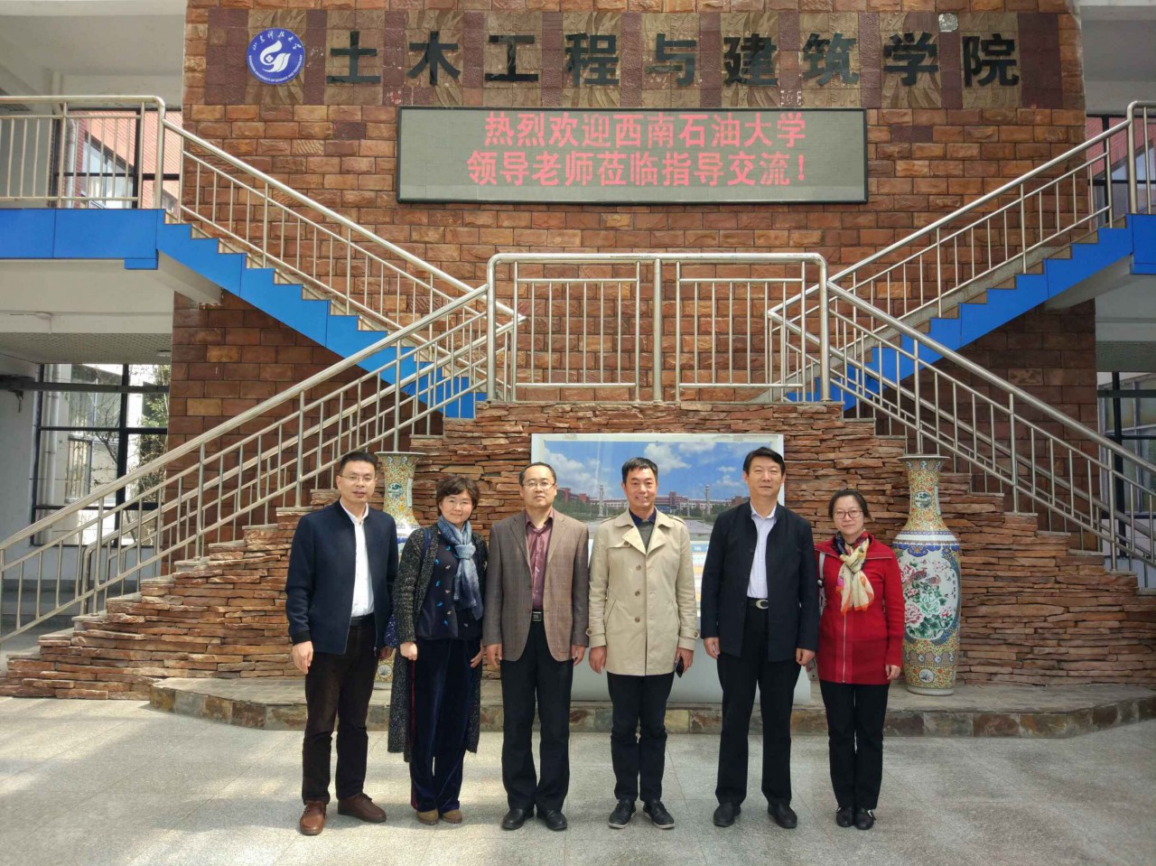 4月4日上午,西南石油大学pg娱乐电子游戏官网入口党委书记曾明友,建筑工程教研室副教授、教授委员会成员蒲万丽,教研室主任、副教授邓夕胜,建环教研室讲师侯向秦一行4人到pg娱乐电子游戏官网入口进行交流调研,pg娱乐电子游戏官网入口pg娱乐电子游戏官网入口党委书记张东、院长王崇革、院长助理李朋及相关系主任参加了此次座谈会。