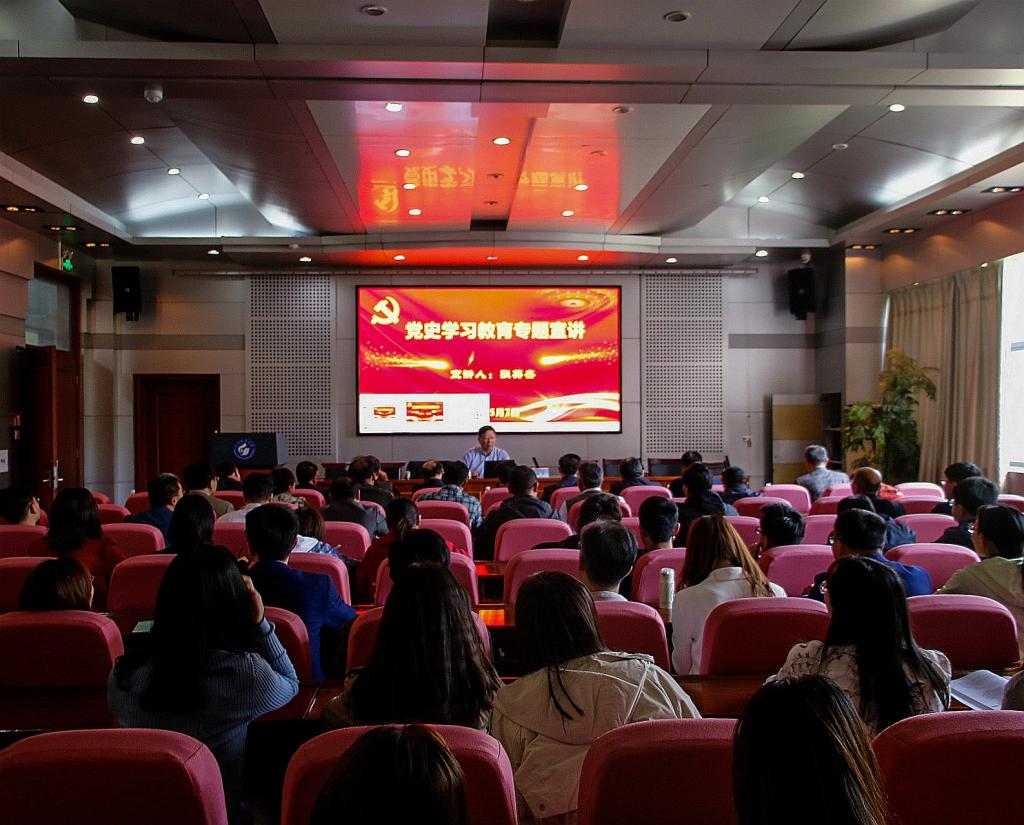 5月7日,校党委常委、副校长张英杰在J4-319报告厅作党史学习教育专题宣讲,题目为《学史明理,为实现中华民族伟大复兴而努力奋斗》。pg娱乐电子游戏官网入口党政领导班子成员、党支部书记、党员师生代表到场聆听了宣讲报告。
