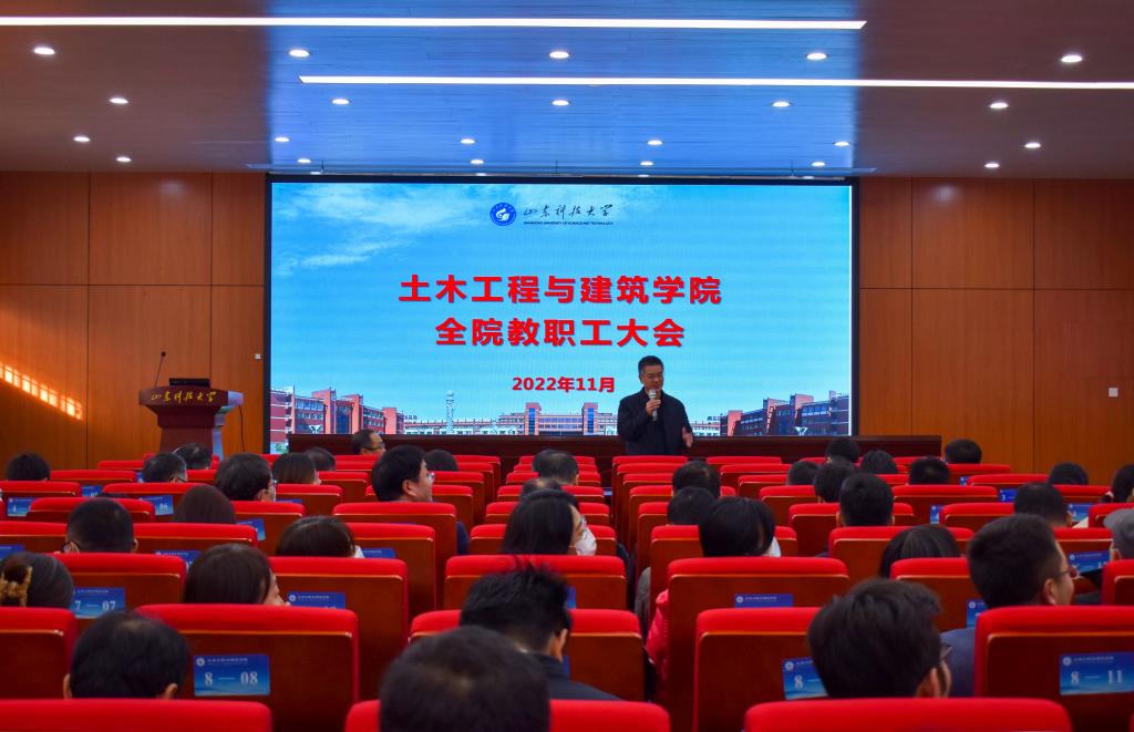 11月15日下午,pg娱乐电子游戏官网入口在J15-136报告厅召开全院教职工大会,会议由学院党委书记宋西路主持,学院全体教职工参加会议。