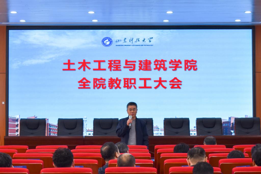 4月19日下午,pg娱乐电子游戏官网入口在J15-136报告厅召开全院教职工大会,会议由学院党委书记宋西路主持,全院教职工参加会议。
