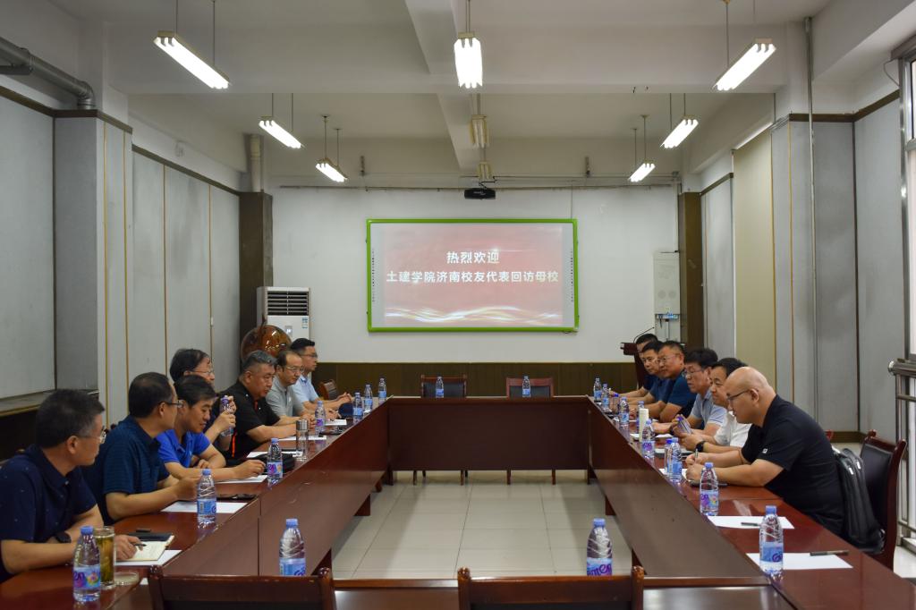 6月17日,pg娱乐电子游戏官网入口济南校友会会长刘京坤,副会长焦勃、文天慧,秘书长单德勇,副秘书长张庆波、梁磊、徐献清,校友李峰一行回访母校,党委副书记尹华会见并座谈。