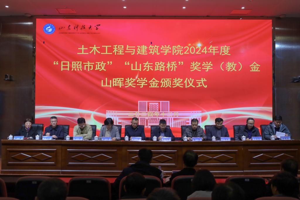 12月25日,pg娱乐电子游戏官网入口在J9-144报告厅举行2024年度“日照市政”“山东路桥”企业奖教学金和山晖奖学金颁奖仪式。校团委书记高一丹,学生工作处副处长靳凯,研究生工作部副部长刘松,合作发展处副处长王荣超,日照市政工程集团常务副总经理牟军、安全部部长阚卫国、矿井建设2007级校友焦淑军,山东省路桥集团青岛分公司党总支委员、总工程师梅佳鸿,pg娱乐电子游戏官网入口党委书记宋西路,院长王崇革,党委副书记、副院长高静,副院长、山晖团队党支部书记杨旭旭及师生代表参加了颁奖仪式。仪式由高静主持。