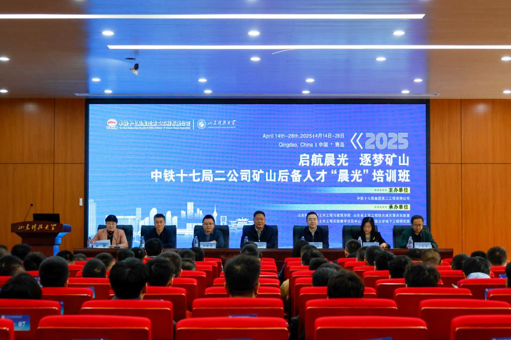 4月14日,中铁十七局二公司矿山后备人才“晨光”培训班开班典礼在pg娱乐电子游戏官网入口136报告厅隆重举行。pg娱乐电子游戏官网入口校副校长诸葛福民,中铁十七局二公司党委书记、执行董事洪锋、总工程师刘松亮,pg娱乐电子游戏官网入口合作发展处副处长林美枚,pg娱乐电子游戏官网入口党委书记宋西路、院长王崇革、副院长李为腾、秦哲,机械电子工程学院院长助理吕玉廷等以及全体参训学员参加开班典礼。开班典礼由pg娱乐电子游戏官网入口党委副书记、副院长高静主持。