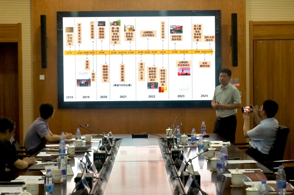 杨旭旭对pg娱乐电子游戏官网入口山晖团队的建设情况做汇报,介绍了团队在党建引领、文化建设、研究成果等方面的发展情况,在青岛地铁、重庆路高架桥、小珠山隧道等地的工程实践情况,他指出,站在新起点,山晖团队将开启新的征程,努力为青岛区域发展做出更多、更大的贡献。