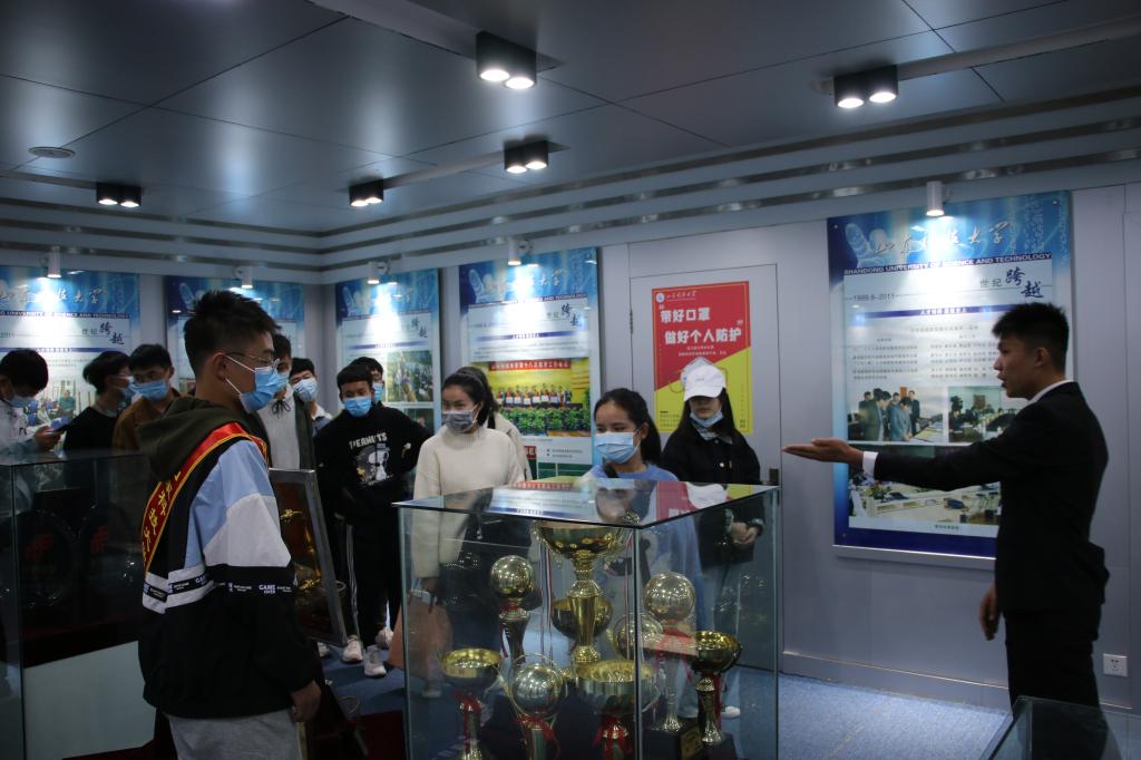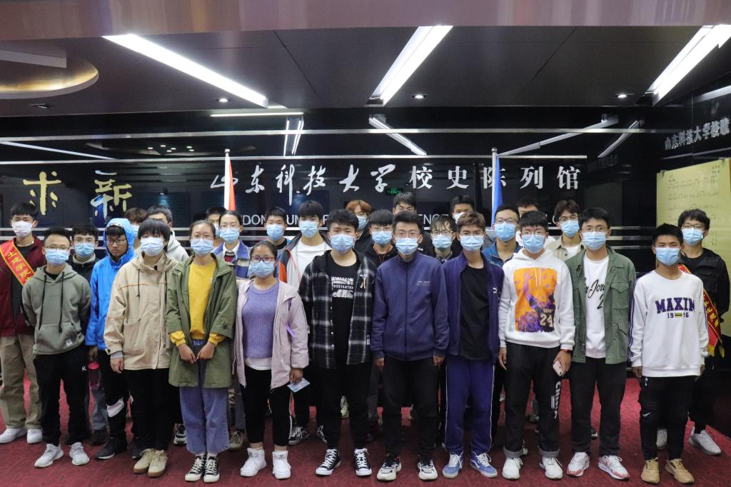 各班级集合结束后分批进入校史馆,在讲解员的带领下,以班级为单位依次参观了校史馆的“学校领导、鸿基初创、艰难前行、探索前进、改革发展”等板块。这些板块将学校建校以来的点滴历程,以及在学校发展历程中做出积极奉献的前辈们的奋斗精神栩栩如生地展现在学生面前。参观过程中,讲解员详细地解读着校史,学生们认真地参观,从一个个展板,一张张照片中,深切感受到学校办学的丰硕成果,加深了对“惟真求新”的校训和“坚韧不拔、发奋图强”的科大精神的认识。最后,同学们来到成果展区进行自由参观,在惊叹之余也暗自下定决心向前辈们学习。活动结束后,各班级进行合影留念。