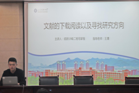 本期讲坛主讲人为pg娱乐电子游戏官网入口2019级硕士研究生毛军恒,主讲题目为《文献的下载阅读以及寻找研究方向》。毛军恒从文献的下载、文献的阅读、研究方向的确定三个方面介绍了研究生在论文下载及撰写过程中可能遇到的问题及解决方法。首先,毛军恒介绍了研究生下载文献的常用网站,并对文献的下载方法进行了详细解说,分享了许多阅读文献的技巧。随后,毛军恒以自身经历为例,为同学们做出了详细的分析,帮助同学们更有目的性的选择自己的研究方向,更快的适应现阶段的学术学习。最后,主讲人与同学们进行了现场答疑,对研究生新生在论文下载及撰写时存在的其他问题进行了补充和解惑,使同学们受益良多。
