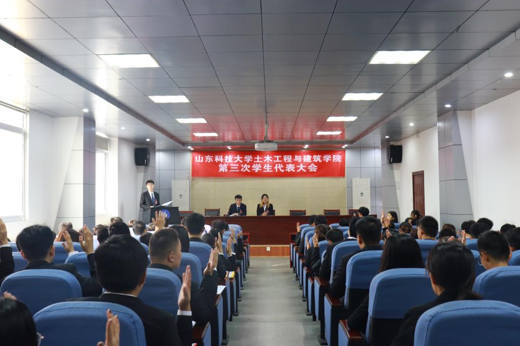10月10日,pg娱乐电子游戏官网入口第三次学生代表大会、第一次研究生代表大会开幕式在J15-136教室隆重召开。pg娱乐电子游戏官网入口党委书记宋西路,党委副书记兼副院长高静,学生工作办公室主任朱统汉及全体辅导员老师应邀出席本次大会,不同专业的本科生代表和研究生代表共123人参加了此次会议。会议分别在J15-201、J15-219设立分会场。