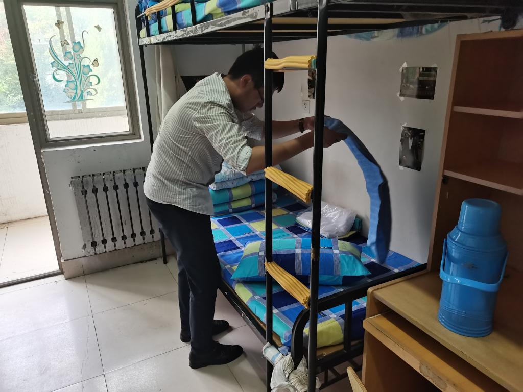 今年新生报到受疫情的影响,很遗憾家长们无法进入校园,考虑到同学们都是00后,大部分同学可能在家都没有亲自装过床单、被罩,为了给同学们营造温馨、暖心的宿舍氛围,我们组织学生党员给新生提前把床铺铺好,让同学们一进宿舍就能感受到家的温暖同时也是让家长们放心。
