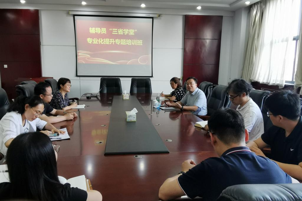 7月16日下午,pg娱乐电子游戏官网入口辅导员“三省”学堂专业化提升专题培训班第三讲在J15-316会议室举行。本次培训邀请到具有近二十年学生工作经验的校宣传部副部长马海超以《学生骨干的培养与使用》为题上课,学院党委副书记高静主持,专兼职辅导员参加。