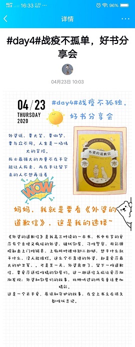 4月23日,值此第25个世界读书日到来之际,pg娱乐电子游戏官网入口依托线上平台,举办以“共战‘疫’不孤‘读’,好书分享会”为主题的世界读书日特别活动,鼓励土建学子好好读书、累积学识、颐养脾性。