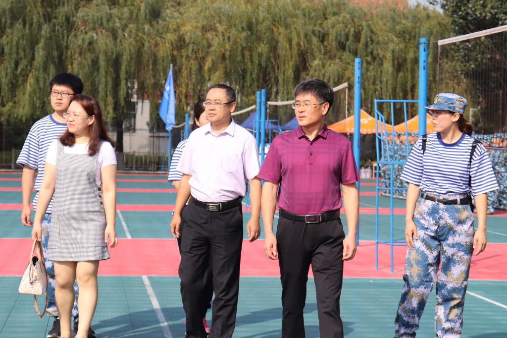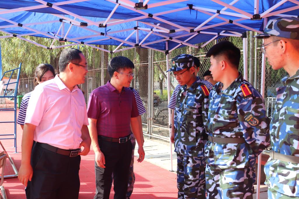 上午,pg娱乐电子游戏官网入口党委副书记(主持工作)宋西路、院长王崇革在团委书记于娜及19级辅导员的陪同下前往训练场地,对新生军训的情况进行了详细了解和指导,对在场工作人员进行了慰问,对因伤无法参训的同学们表示关心,对军训场地布置和宣传工作进行了视察。学院领导还进入训练场地,驻足观看学生们的训练情况,与各位教官进行了交流,对他们的耐心指导和辛苦付出表示了感谢。