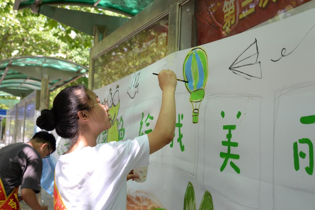 生机盎然,鸟鸣声声,美丽的山科沐浴在暖暖的阳光下。恰逢世界环境日,pg娱乐电子游戏官网入口青年志愿者协会在A餐南门举办“绿色梦想家”彩绘活动,邀请同学们一起着手点滴绿色,绘我美丽山科。