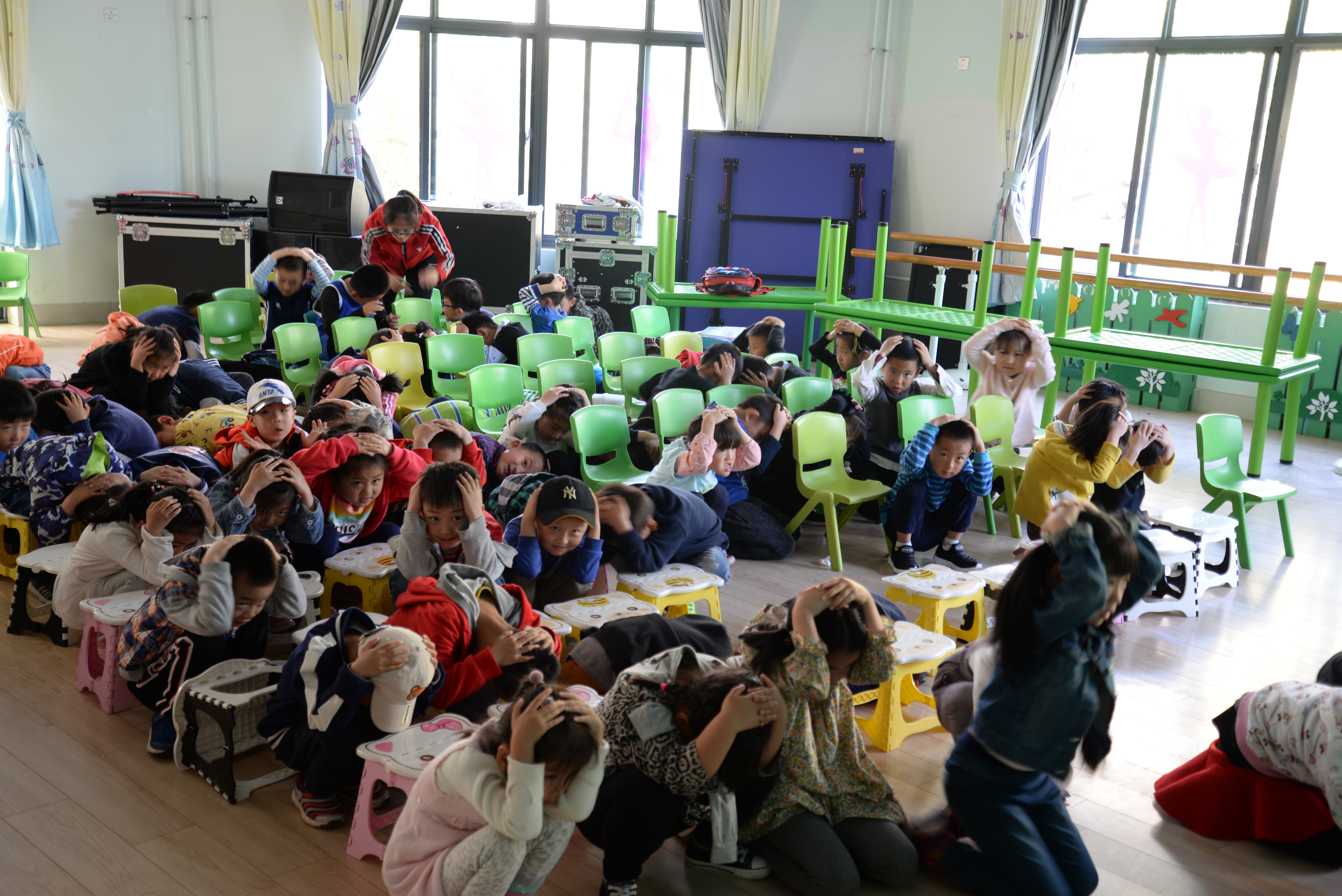 讲师团指导科大幼儿园小朋友进行逃生演练