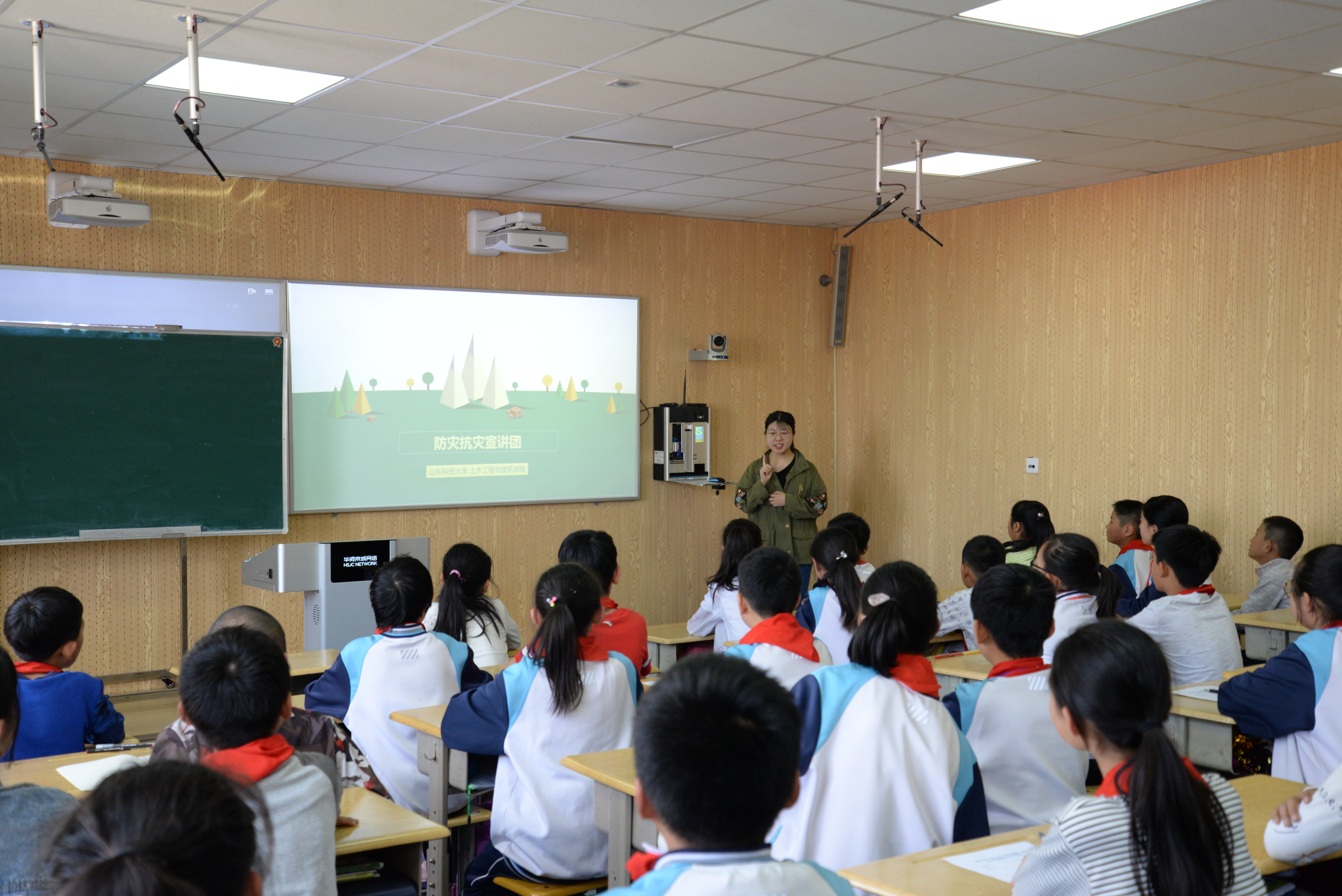 5月9日,讲师团一行先后到开发区台头小学、下庄小学、山科大幼儿园进行了宣讲。讲师团成员通过课件、视频和防灾减灾知识宣传册的形式,从“你了解地震吗”、“地震前征兆”、“我们怎样做”、“如何自救”等四个方面向同学们介绍了地震的发生原因与预兆、逃生技巧,分析了我国发生的地震灾害案例,并针对预防二次受灾情况的发生向大家讲解了相关自救知识以及救灾器械的使用方法。