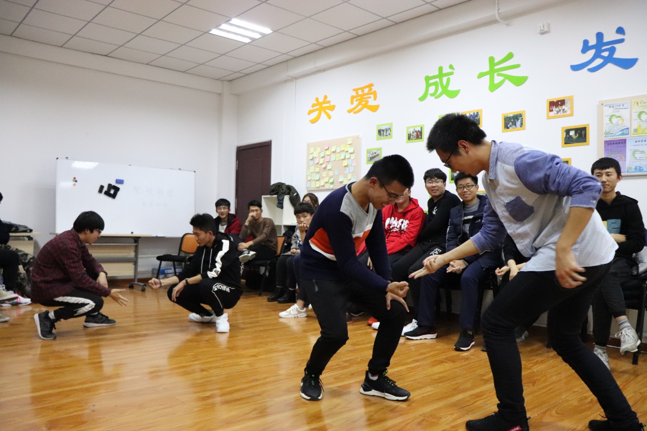 此次团体心理辅导共划分为4个单元,分别是“团队初始”、“团队构建”、“团队合作”、“团队分享”。首先由“捏拍捶”、“点爆竹”热身活动开始,让同学们消除紧张,放松心情,进入活动状态。通过“黑白配”快速分组,明确团队名称和口号,构建团队。“团队合作”阶段包含4个活动:“滚雪球”活动通过个人信息的不断强化打通同学之间认识的桥梁,“桃花朵朵开”旨在让大家体验“被抛弃、被支持”的感觉,从而更愿意与团体在一起,“坐地起身”和“解开千千结”让同学们体会到加强合作的重要性,同时,在面对困难时积极探索,全方位、多途径地解决问题。在“团队分享”阶段,同学们畅所欲言,积极发表自己在活动中的收获和感悟,并表示在活动中又认识了很多新朋友感到非常开心,同时也深刻领会到了班干部更应该通过自身的不断努力来团结集体、调动同学们的积极性、提高班级同学的凝聚力。
