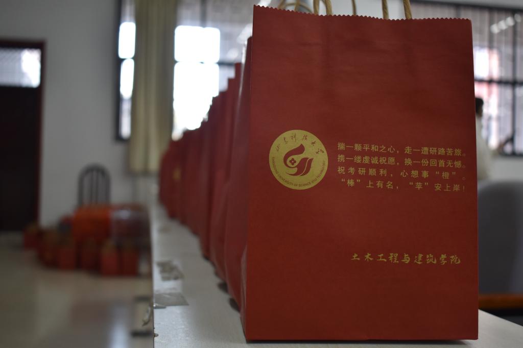 据悉,该“加油包”中包含一个苹果,祈愿考生“苹”安上岸;一根棒棒糖,祝福考生“棒”上有名;一盒牛奶,祝愿考生“牛”气冲天;一个橙子,寓为心想事“橙”。微微薄礼,浓浓真情,学院精心准备的礼物温暖了每一位考研学子的心。