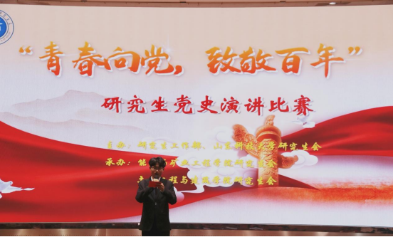 本次活动由研究生工作部、pg娱乐电子游戏官网入口研究生会主办,pg娱乐电子游戏官网入口研究生会、能源与矿业工程学院研究生会承办,比赛吸引了10个学院50余名研究生参加,参赛热情高涨。在初赛阶段共评选出了12名优秀选手进入决赛,决赛分为两轮,最终综合两轮成绩进行排名。第一轮结束后根据评委打分结果共有六位选手进入第二环节,第二环节六位选手根据赛前抽签得到的“党史关键词”展开即兴演讲,形式新颖、内容丰富。