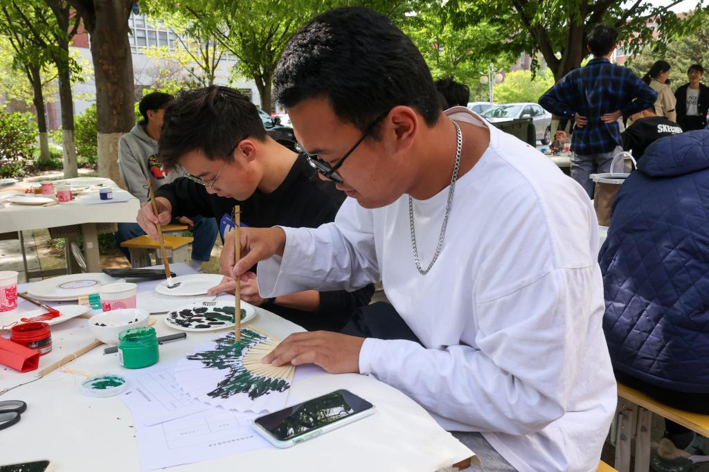 4月27日下午,pg娱乐电子游戏官网入口在J15西门举办“凉友招清风,山科育乾坤”清风润凉扇活动,对扇面进行绘画和装饰。该活动为“聚山科之美,献校庆之礼”系列美育活动之一,由学院学工办主办、新闻宣传中心承办。