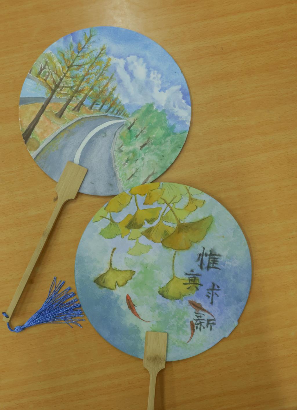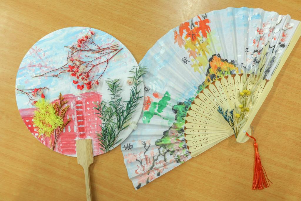 学生们以“科大”为灵感来源,画笔翻飞,干花粉饰,使得本就朴素的纸扇带上了自己的色彩。咫尺成扇,刹那芳华,伴随着同学们的欢声笑语,春日的土建楼也洋溢着青春的气息。清风徐徐,涉水而来,它仿佛也感受到了这里异于其他地方的生机,轻拂盈盈的心灵,为这里的天空韵染了芳菲的故事。活动中,学工办辅导员们莅临现场,与学生共同挖掘、展现科大之美。