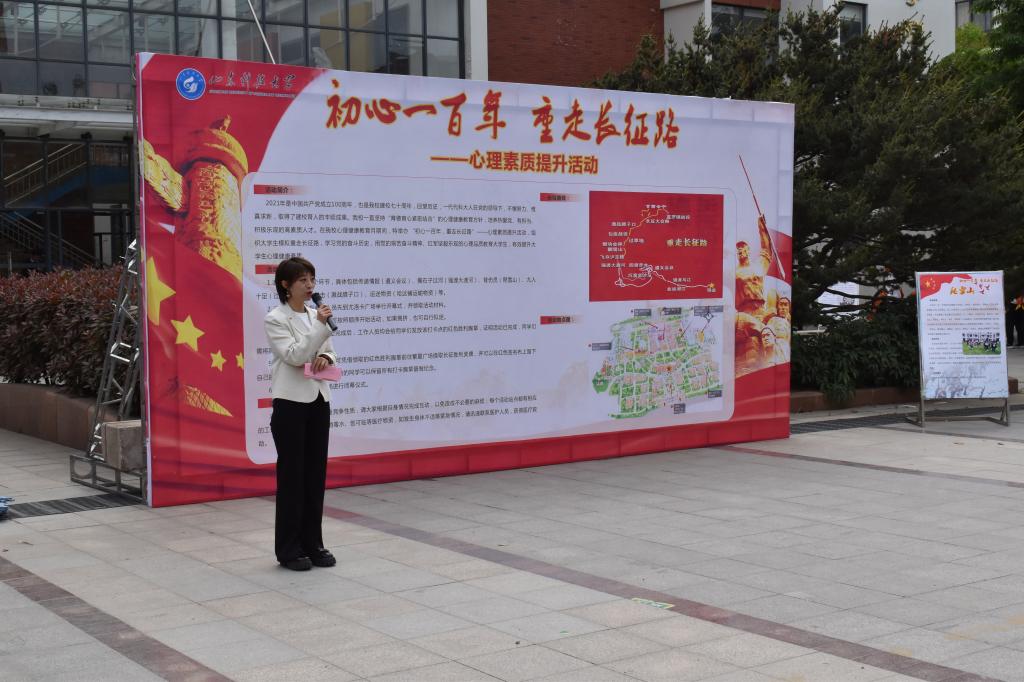 为迎接建党百年华诞,重温百年奋斗史诗,进一步追寻长征记忆,弘扬长征精神,增强学生的自我心理保健意识,5月9日上午,由学生处心理健康中心主办、pg娱乐电子游戏官网入口学工办承办的“初心一百年,重走长征路”心理素质拓展活动在J15西门广场开展,心理健康中心乔杨、能源学院岳淑玲、pg娱乐电子游戏官网入口鲍娜娜及各学院百余名学生参加了本次活动。
