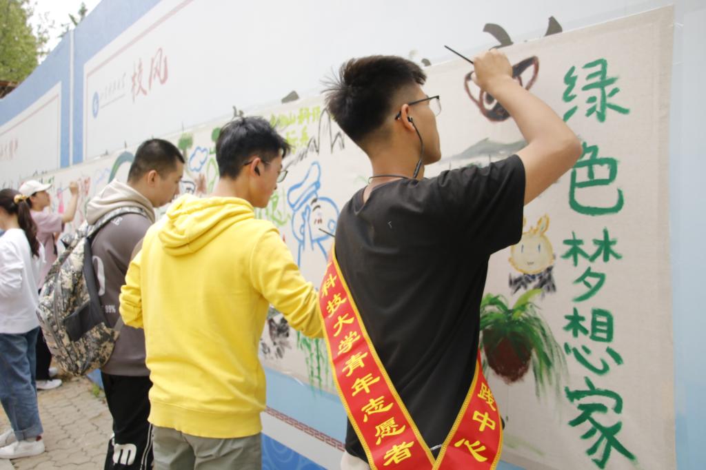 为了培养同学们爱护校园、保护环境的意识,共同营造绿色整洁的生活环境,5月9日上午10点,pg娱乐电子游戏官网入口青年志愿者协会在A餐南门举办了“聚科大之美,献校庆之礼”系列美育活动之“绿色梦想家”彩绘活动。