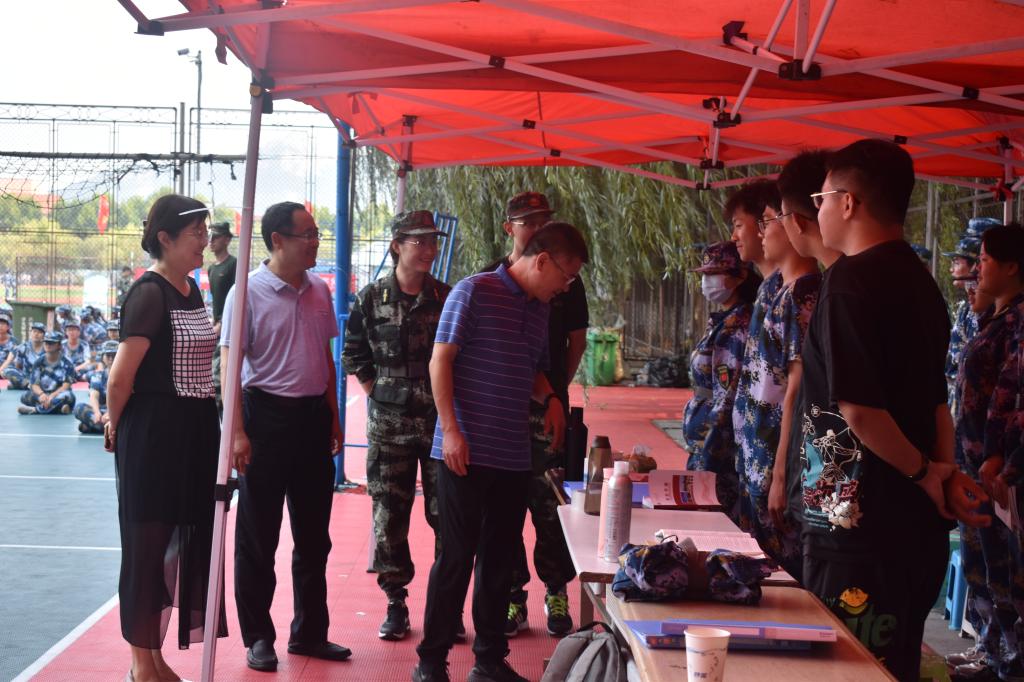 下午,pg娱乐电子游戏官网入口党委书记宋西路、院长王崇革、党委副书记高静到军训场看望教官与同学们,看到同学们在烈日下整齐的步伐以及嘹亮的喊声,他们的脸上也露出了高兴与自豪。
