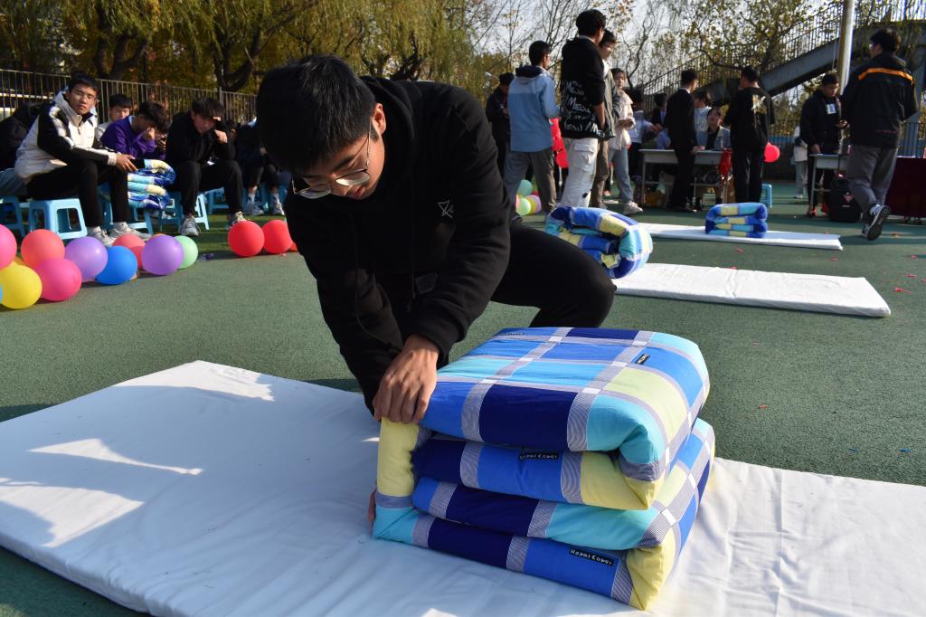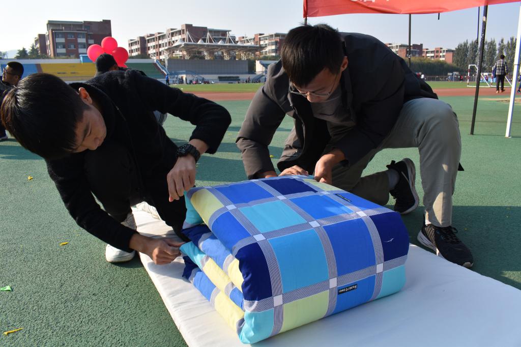 为丰富pg娱乐电子游戏官网学生的校园文化生活,营造富有特色的寝室文化氛围,增强学生的宿舍安全意识;同时为提高广大同学的团队精神,形成良好的生活和学习环境,推动良好学风的建设,营造和谐友爱的校园氛围。pg娱乐电子游戏官网入口于11月中旬至12月中旬举办第十七届“和谐土建,温暖之家”宿舍文化节系列活动。11月13日,pg娱乐电子游戏官网入口自律会在风雨操场举办了宿舍文化节启动仪式和“叠军被大赛”。学院党委副书记兼副院长高静、自律会会长王祺全参加了本次启动仪式。