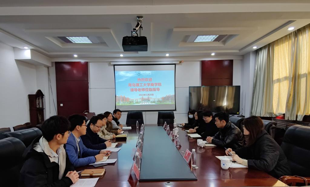 11月25日,青岛理工大学商学院党委副书记李慧,学工办主任薛诚,学工办辅导员杨洪敏、孙楚、藏瑶瑶一行到访pg娱乐电子游戏官网入口。pg娱乐电子游戏官网入口党委副书记高静,学工办主任朱统汉,学工办辅导员鲍娜娜、刘超、刘泽群、研究生第一党支部书记韩一鸣参加了座谈会。