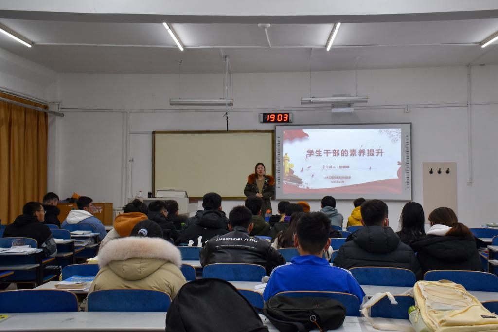 为认真贯彻落实习近平总书记关于青年工作的重要思想,进一步加强pg娱乐电子游戏官网入口基层团干部队伍建设,提升学生干部的工作水平,12月17日晚,pg娱乐电子游戏官网入口于S1-209教室举办“青马工程”基础班第四讲。本次课程由pg娱乐电子游戏官网入口学生工作办公室辅导员鲍娜娜主讲,“青马班”全体学员和学生会、研究生会干部参加会议。