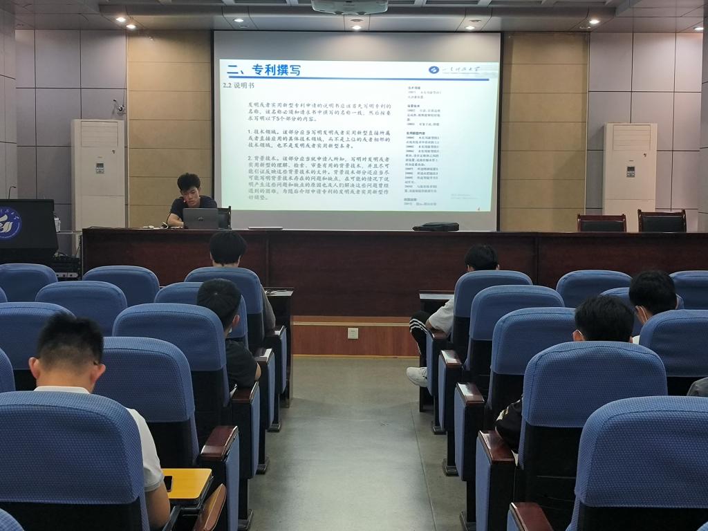 5月20日,由pg娱乐电子游戏官网入口校研究生会学术部主办、pg娱乐电子游戏官网入口研究生会承办的第1072期研究生讲坛在J15-219会议室成功举办。本次讲坛主讲人为pg娱乐电子游戏官网入口2021级2班研究生亓传德,主讲题目为“专利撰写及专利提交流程”,部分研究生代表参加讲座。