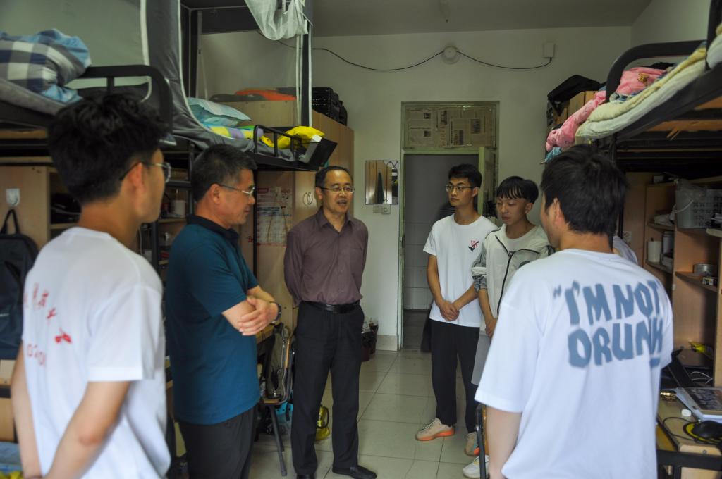 “老家是哪里的?”“工作找好了吗?”“考研考到哪所学校啦?”“对学院还有什么建议?”每到一间宿舍,老师们都与毕业生亲切交谈,详细了解毕业生目前的就业、升学、未来的发展规划和离校前准备等情况,耐心询问毕业生对学校教育教学、管理服务等方面的意见建议,以及他们生活、就业中存在的困难。听到有的同学已经找到心仪的工作,有的考入名校继续深造,老师们非常高兴,勉励毕业生们无论是参加工作还是继续深造,都要不断学习新知识,不断充实丰富自己,在学思践悟中坚定理想信念,在持续学习中提升核心竞争力,把握主动权,赢得未来。同时希望同学们毕业后无论身在何方,都要关心母院发展,与母院保持密切联系,不断增进与母院的感情,在空暇之余常回“家”看看。