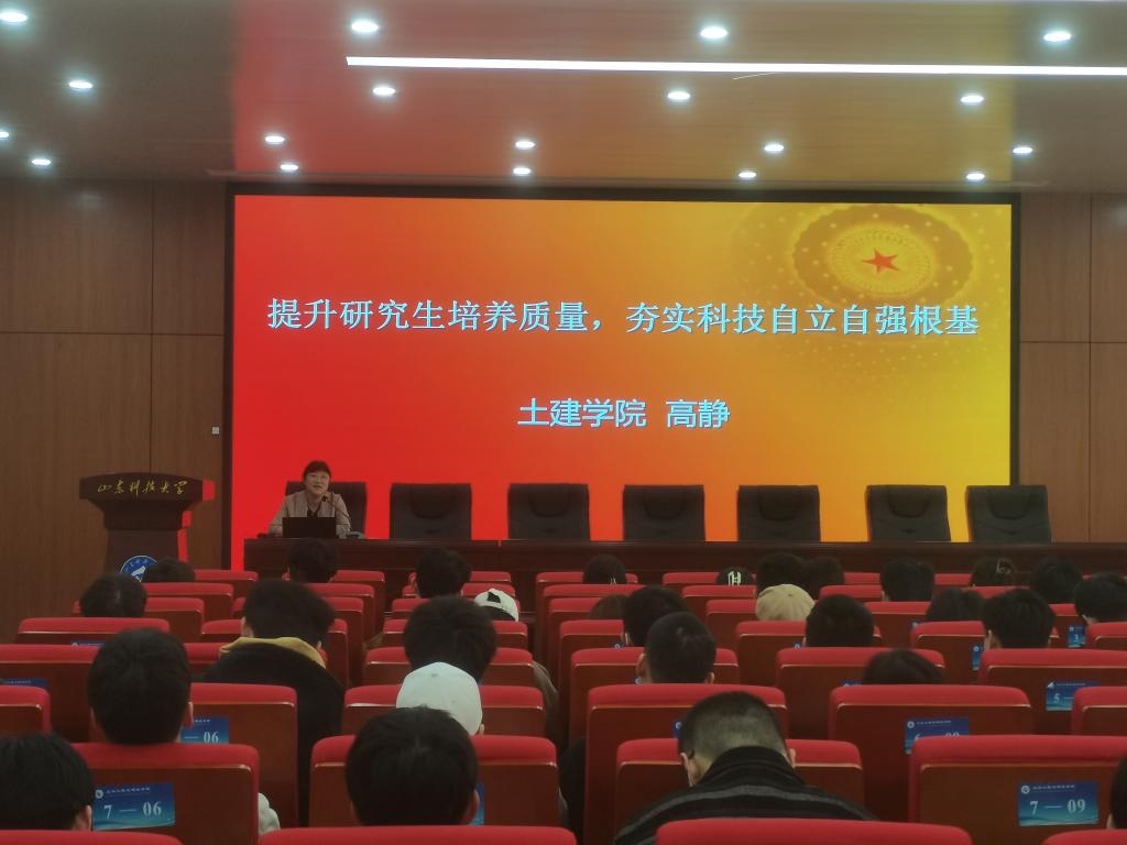 为了进一步营造研究生的学术氛围、增进研究生的综合素养。4月7日上午,pg娱乐电子游戏官网入口在J15-136举办了“提升研究生培养质量,夯实科技自立自强根基”专题报告会。本次报告会由学院党委副书记、副院长高静主讲,研究生辅导员史卫平主持,2022级全体硕士研究生参加会议。