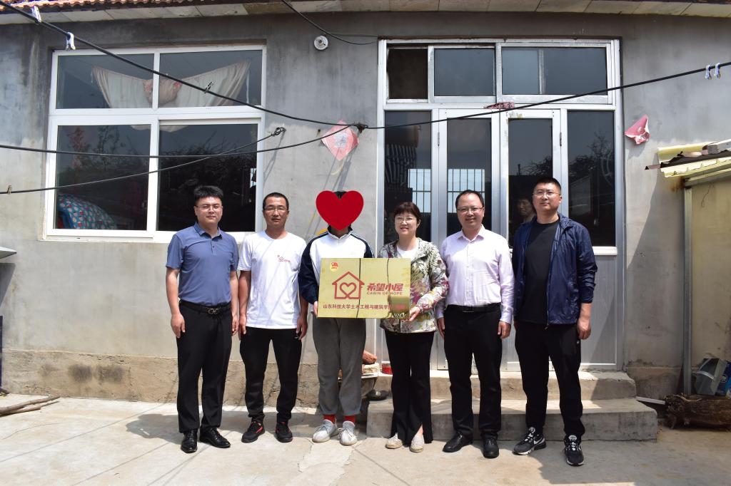 5月20日上午,pg娱乐电子游戏官网入口党委副书记兼副院长高静、团委书记朱统汉与团委辅导员们到达海阳市朱吴镇,与海阳团市委书记刘国兴、朱吴镇党委、城北善道公益发展中心一行同为“希望小屋”揭牌。