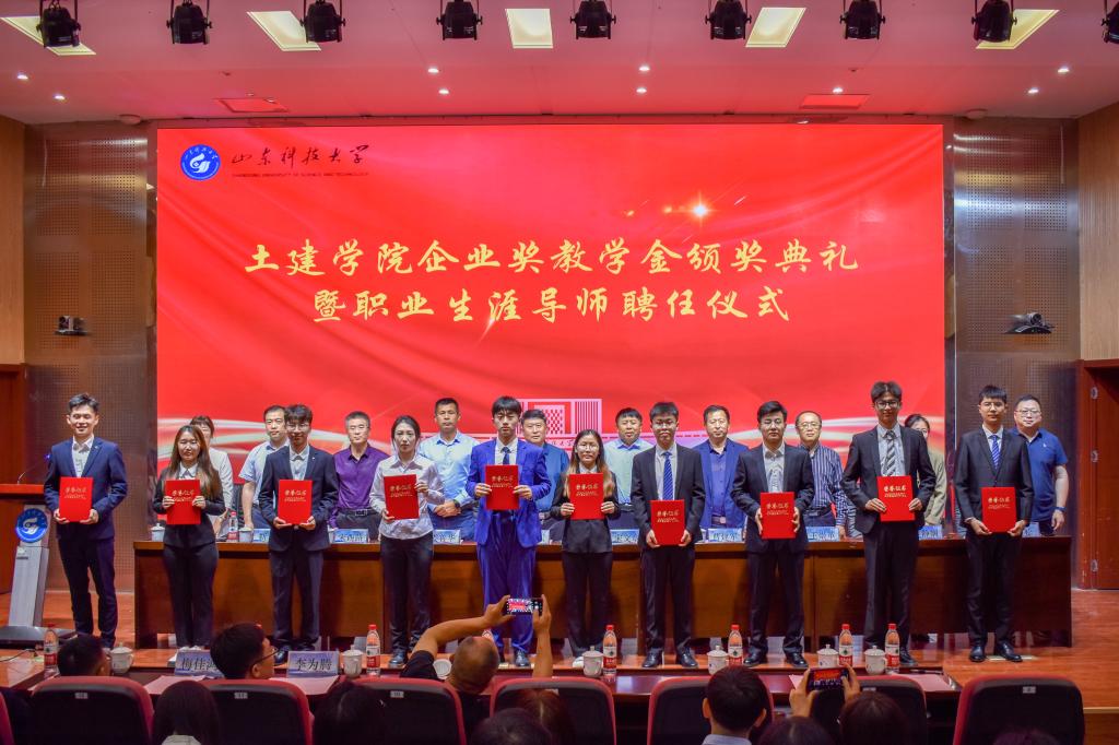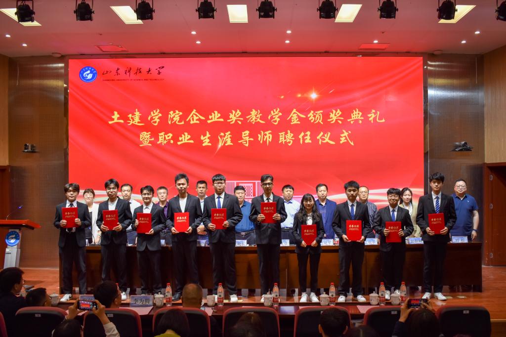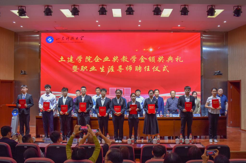 5月24日,pg娱乐电子游戏官网入口企业奖教学金颁奖典礼暨职业生涯导师聘任仪式在J9-144报告厅举行。烟台平安信息工程职业技能培训学校校长宋文章,日照市政集团常务副总经理娄善华、爆破公司经理焦淑君,山东省路桥集团青岛分公司党总支书记、副总经理曹建军,党总支委员、总工程师梅佳鸿,学校合作发展处处长王晓东,学生工作处副处长靳凯,校团委副书记侯静娴,研究生院副院长刘松,及pg娱乐电子游戏官网入口师生代表参加了本次颁奖典礼。典礼由pg娱乐电子游戏官网入口党委副书记高静主持。