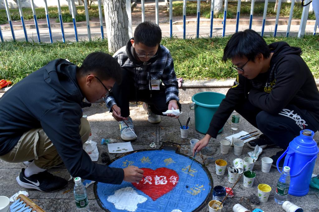 10月14日上午,pg娱乐电子游戏官网入口在风雨操场西侧举办井盖彩绘活动,学生们以精彩的创意为井盖增添绚丽色彩,用手中的画笔打造校园特色景观。