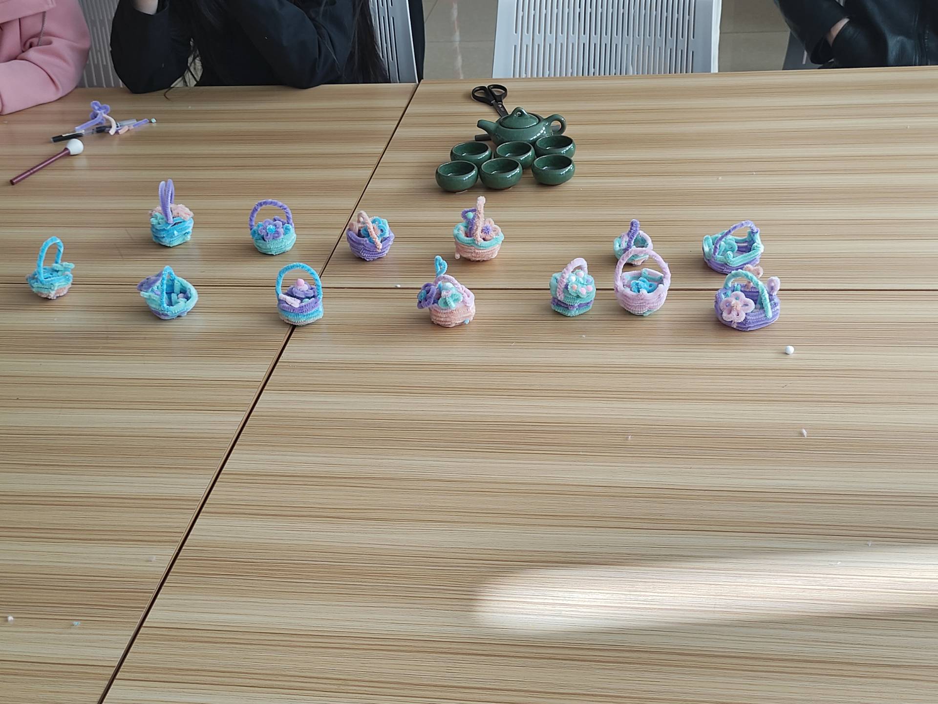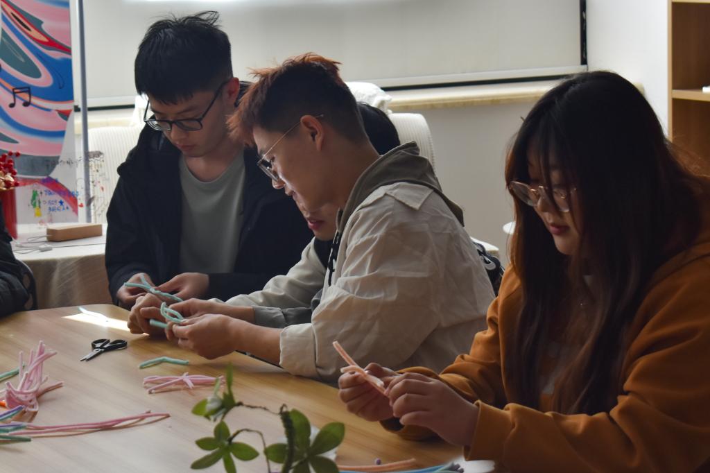 本次活动以“春日心语”为引,带领大家共同创作手工花篮与手工花。在活动开始前,由pg娱乐电子游戏官网入口心健联为参与活动的学生们准备了扭扭棒、剪刀等工具。活动当天,大家在图书馆209集合,在两位匠心手艺协会成员的指导下认真学习并加 入自己的创意进行手工制作。大家创作的花篮花朵作品色彩斑斓、形态各异,为校园的春天增加了一份别样的艺术气息。