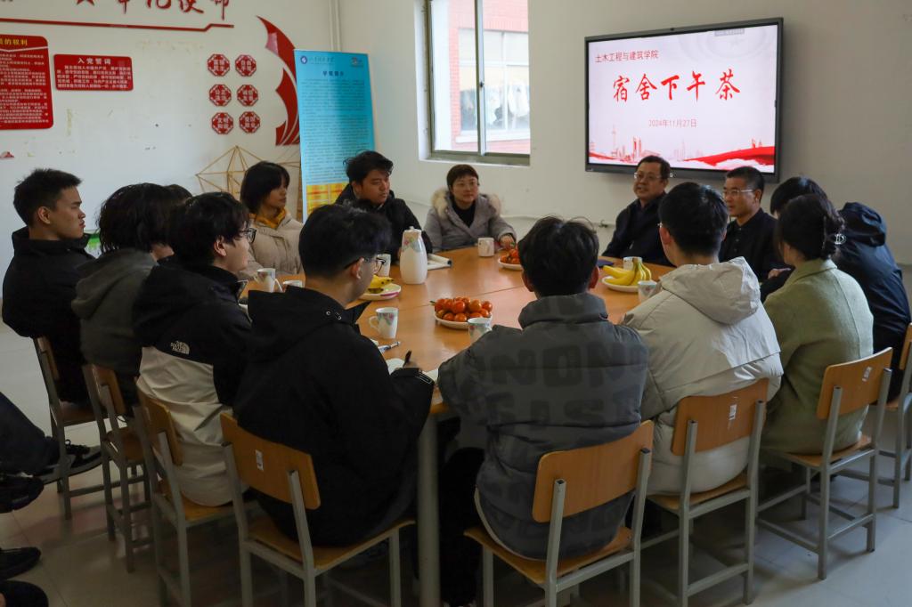 11月27日下午,校党委统战部常务副部长王永君做客pg娱乐电子游戏官网入口“宿舍下午茶”,与所联系班级土木工程2022-1班的同学们开展了一场亲切且深入的座谈交流活动。学院党委书记宋西路,党委副书记、副院长高静,学工办主任、团委书记王贝贝,辅导员老师李宏宇陪同参加。