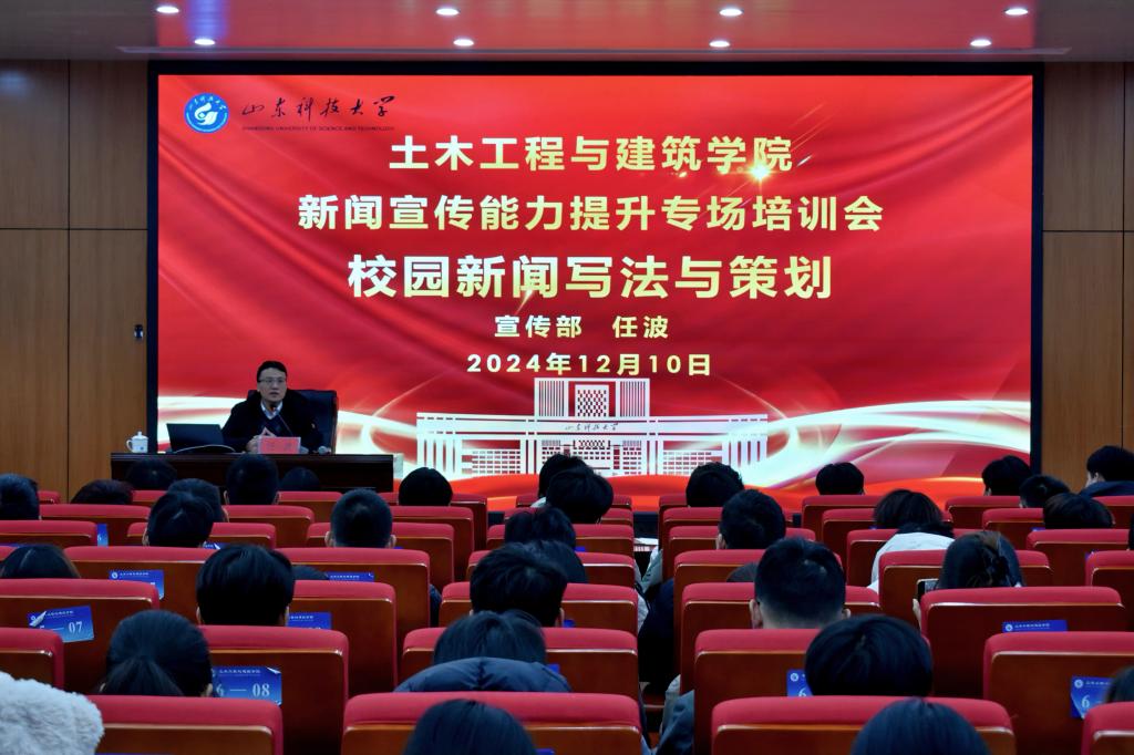 为切实提高pg娱乐电子游戏官网新闻宣传工作队伍的业务能力,不断提升学院新闻宣传工作的质量和水平,pg娱乐电子游戏官网入口于12月10日在J15-136报告厅举办新闻宣传能力提升专场培训会。本次培训会邀请到校党委宣传部任波老师主讲,学院新闻宣传中心成员及各班级宣传委员参加此次培训会,培训会由学生工作办公室主任、团委书记王贝贝主持。
