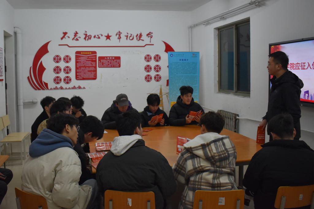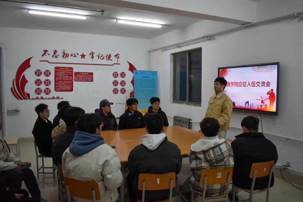 为进一步贯彻落实国家征兵政策,积极动员学院青年学子踊跃报名参军、献身国防,12月18日,pg娱乐电子游戏官网入口于GB2宿舍楼党员之家举行应征入伍交流会,团委辅导员老师王瑜,退伍复学学生代表尹国鹏、张泽培以及有意愿入伍的同学参加会议。