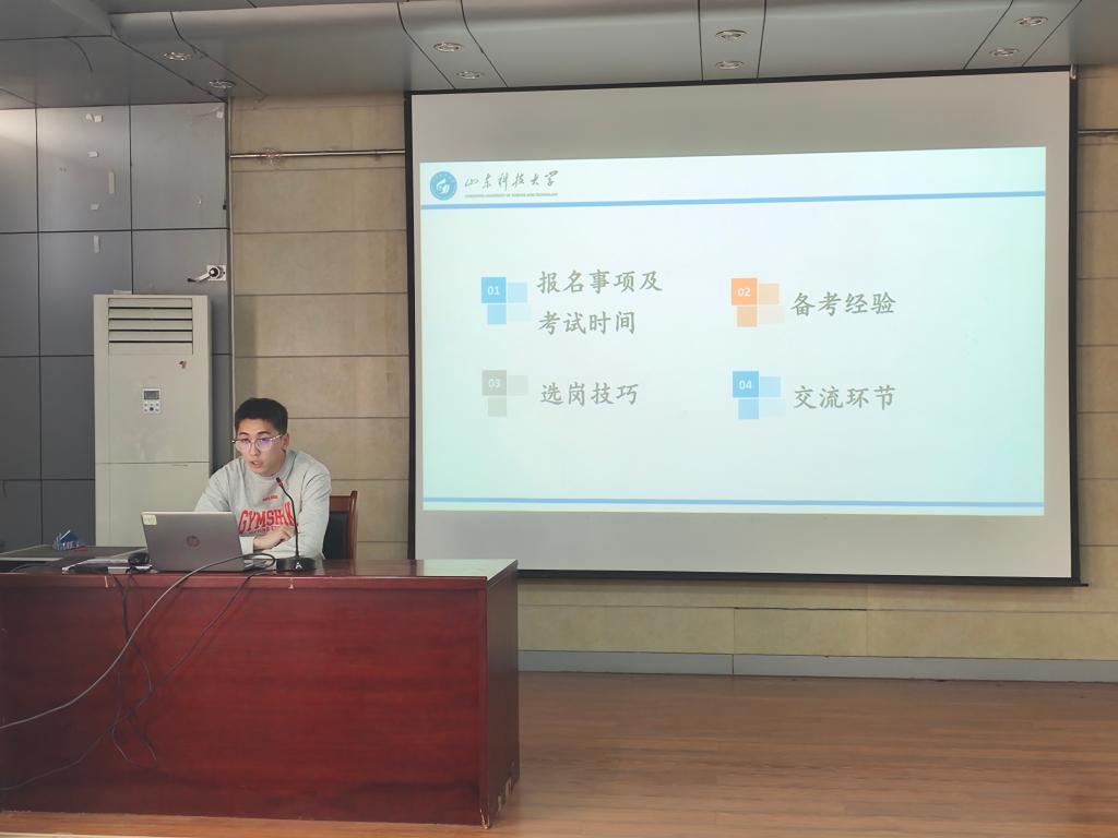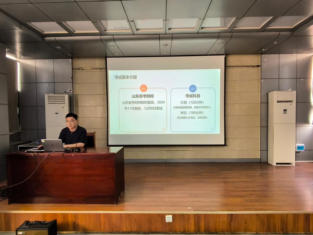 为助力学生精准把握山东省及全国体制内岗位的报考要点,系统了解公考政策形势,科学制定备考方案,4月29日,pg娱乐电子游戏官网入口于J15-219教室举办“砼心筑梦·就业领航”系列活动讲座。本次讲座特邀pg娱乐电子游戏官网已在山东省省考中上岸的2022级研究生黄明、侯宗汛同学担任主讲。讲座聚焦省考笔试“行测+申论”双科提分技巧与面试核心能力培养,并针对省考报考政策进行了系统解读。