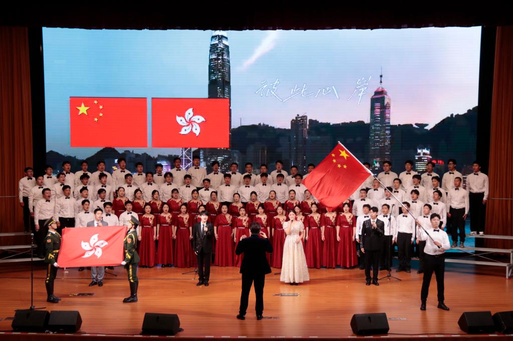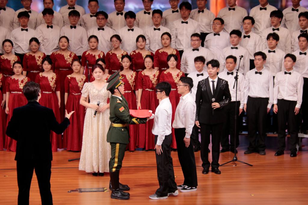 比赛中,pg娱乐电子游戏官网入口合唱团以高亢嘹亮的歌声、整齐划一的动作和饱满的热情惊艳全场。合唱节目中融合了小提琴、朗诵、情景剧、舞蹈等表演形式,其中以中英两国政府香港政权交接仪式为蓝本创作的情景剧,生动再现了那个令中华民族热血沸腾、举国欢庆的历史性时刻,深深打动了评委和观众。随着“此生无悔入华夏,来世还做中国人!”的呐喊响彻全场,演出戛然而止,随即雷鸣般的掌声席卷全场,这不仅是对合唱团倾情演绎的肯定,更是对全体师生爱国情怀的深情致敬。