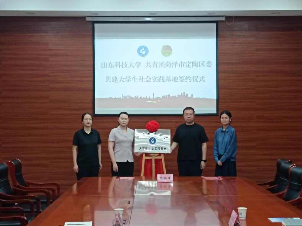 为积极探索产学研合作模式,助推青年成长与基层治理互促共进,7月22日,pg娱乐电子游戏官网入口与共青团定陶区委在定陶区人民政府举办共建大学生社会实践基地签约揭牌仪式。共青团定陶区委书记陈静、副书记庞惠婷,pg娱乐电子游戏官网入口团委老师李沛东,燃梦公益支教队学生代表孙稼琳等参加活动。