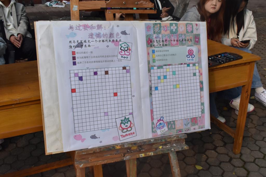 为丰富校园文化生活,关注学生心理健康,搭建一个促进学生自我觉察与情感交流的公共平台,pg娱乐电子游戏官网入口心健联于10月26日在繁星广场举办以“绘色心声,共情共鸣”为主题的心理活动。本次活动旨在借助非语言的创造性表达,引导学生关注内心世界,从而促进个人的情绪疗愈。