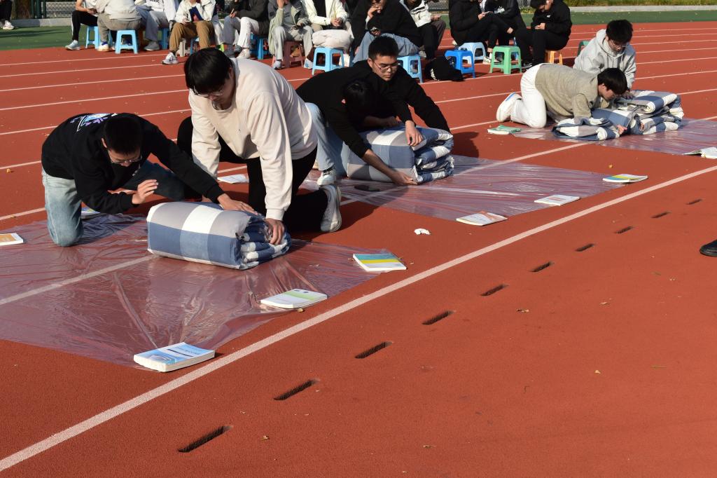 为丰富pg娱乐电子游戏官网学子校园文化生活,增强团队协作精神与集体凝聚力,11月11日,pg娱乐电子游戏官网入口于科创园区田径运动场举办第二届“筑梦社区,律行青春”社区文化节系列活动——叠军被大赛。本次大赛由pg娱乐电子游戏官网入口自律会各部门部长担任评委,15个宿舍踊跃参与,现场气氛热烈、活力四射。