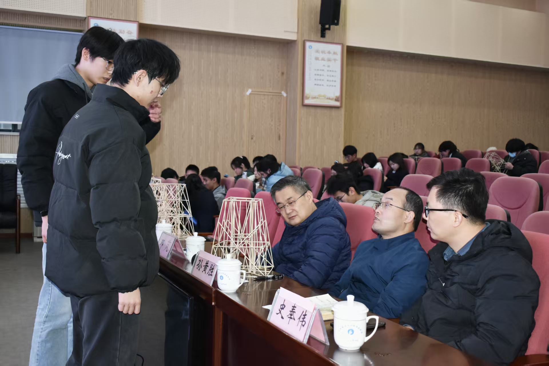2025年12月30日,第十六届创意模型大赛在我校J9-144报告厅顺利举办。本次大赛以“搭建理论知识与工程实践深度融合的创新平台”为宗旨,旨在激发土建学子的创新思维与动手能力,推动学科知识与实际应用的有机结合。建筑工程系邓芃、孙黄胜、史奉伟三位老师担任评委。